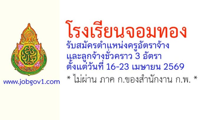 โรงเรียนจอมทอง รับสมัครครูอัตราจ้าง และลูกจ้างชั่วคราว 3 อัตรา ตั้งแต่วันที่ 16-23 เมษายน 2569
