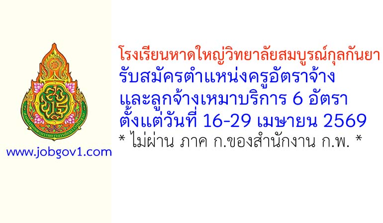 โรงเรียนหาดใหญ่วิทยาลัยสมบูรณ์กุลกันยา รับสมัครครูอัตราจ้าง และลูกจ้างเหมาบริการ 6 อัตรา ตั้งแต่วันที่ 16-29 เมษายน 2569