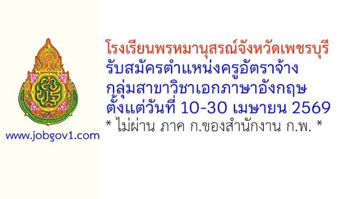 โรงเรียนพรหมานุสรณ์จังหวัดเพชรบุรี รับสมัครครูอัตราจ้าง กลุ่มวิชาภาษาอังกฤษ ตั้งแต่วันที่ 10-30 เมษายน 2569