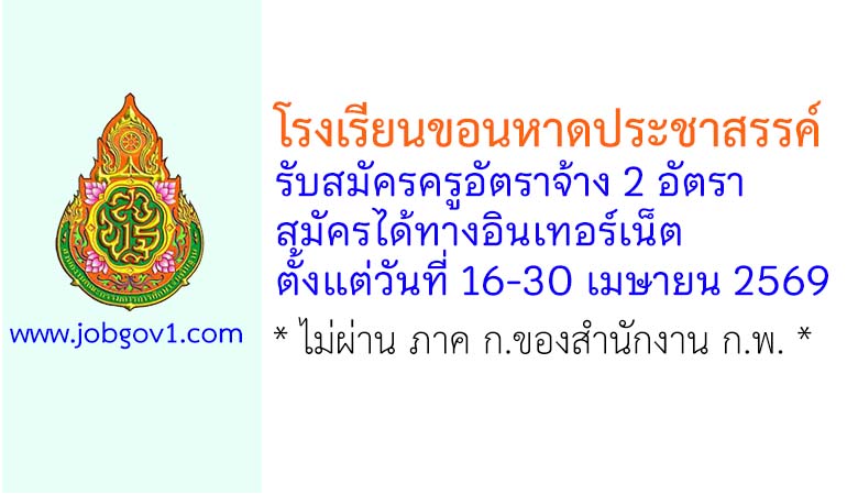 โรงเรียนขอนหาดประชาสรรค์ รับสมัครครูอัตราจ้าง 2 อัตรา ตั้งแต่วันที่ 16-30 เมษายน 2569