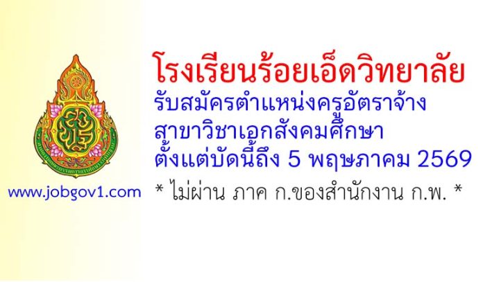 โรงเรียนร้อยเอ็ดวิทยาลัย รับสมัครครูอัตราจ้าง สาขาวิชาเอกสังคมศึกษา ตั้งแต่บัดนี้ถึง 5 พฤษภาคม 2569