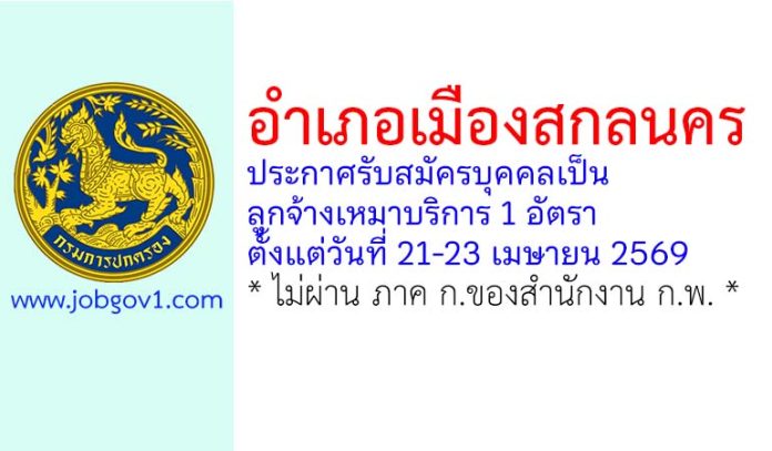 อำเภอเมืองสกลนคร รับสมัครบุคคลเป็นลูกจ้างเหมาบริการ 1 อัตรา ตั้งแต่วันที่ 21-23 เมษายน 2569