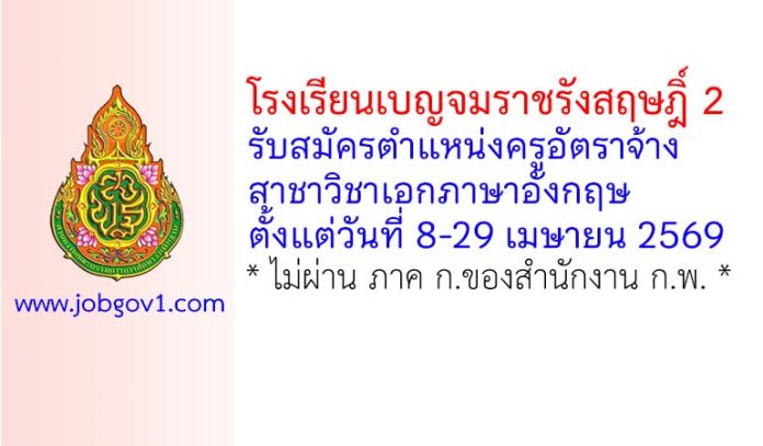 โรงเรียนเบญจมราชรังสฤษฎิ์ 2 รับสมัครครูอัตราจ้าง วิชาภาษาอังกฤษ ตั้งแต่วันที่ 8-29 เมษายน 2569