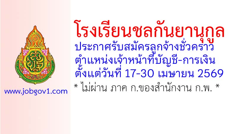 โรงเรียนชลกันยานุกูล รับสมัครลูกจ้างชั่วคราว ตำแหน่งเจ้าหน้าที่บัญชี-การเงิน ตั้งแต่วันที่ 17-30 เมษายน 2569