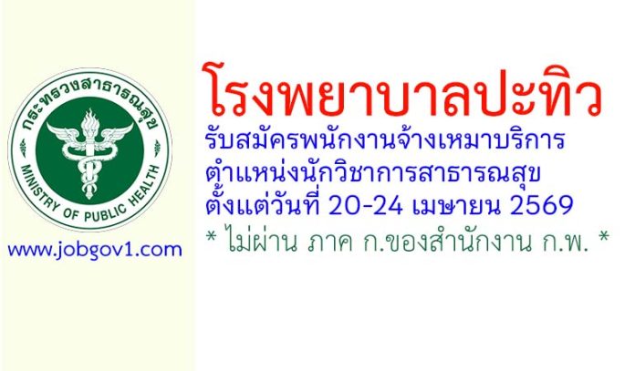 โรงพยาบาลปะทิว รับสมัครพนักงานจ้างเหมาบริการ ตำแหน่งนักวิชาการสาธารณสุข ตั้งแต่วันที่ 20-24 เมษายน 2569