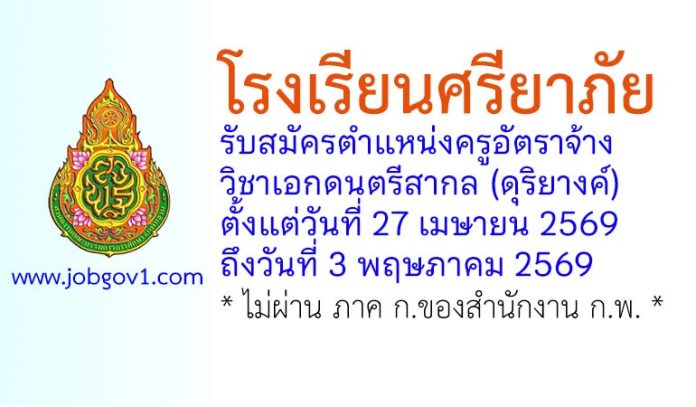 โรงเรียนศรียาภัย รับสมัครครูอัตราจ้าง วิชาเอกดนตรีสากล (ดุริยางค์) ตั้งแต่วันที่ 27 เมษายน 2569 ถึงวันที่ 3 พฤษภาคม 2569