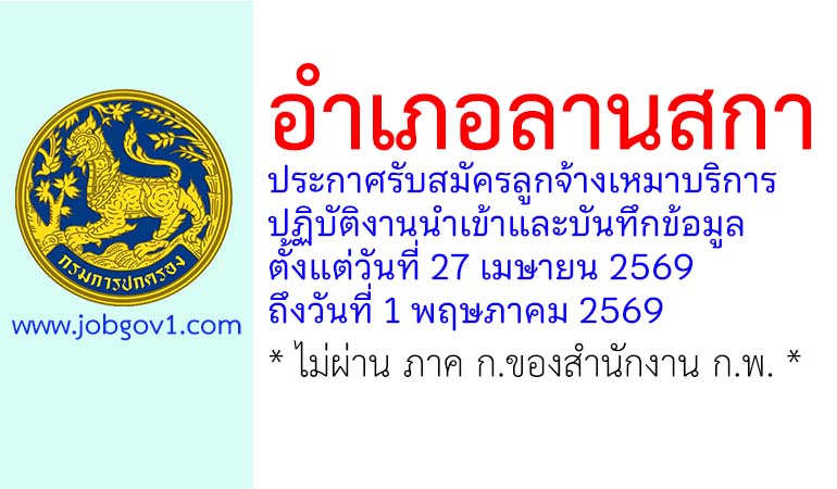อำเภอลานสกา รับสมัครลูกจ้างเหมาบริการ ปฏิบัติงานนำเข้าและบันทึกข้อมูล ตั้งแต่วันที่ 27 เมษายน 2569 ถึงวันที่ 1 พฤษภาคม 2569