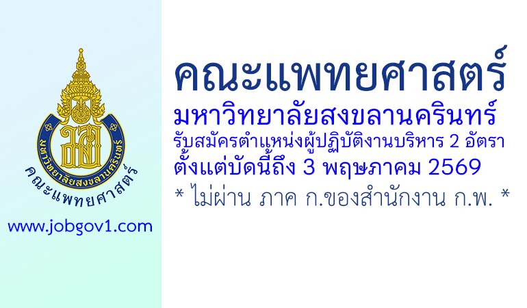 คณะแพทยศาสตร์ มหาวิทยาลัยสงขลานครินทร์ รับสมัครตำแหน่งผู้ปฏิบัติงานบริหาร 2 อัตรา ตั้งแต่บัดนี้ถึง 3 พฤษภาคม 2569