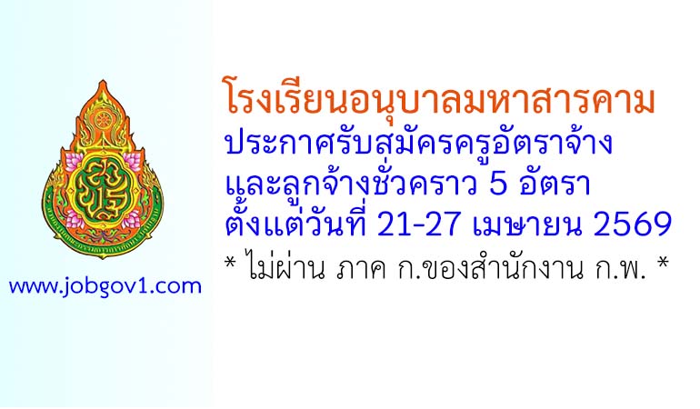 โรงเรียนอนุบาลมหาสารคาม รับสมัครครูอัตราจ้าง และลูกจ้างชั่วคราว 5 อัตรา ตั้งแต่วันที่ 21-27 เมษายน 2569