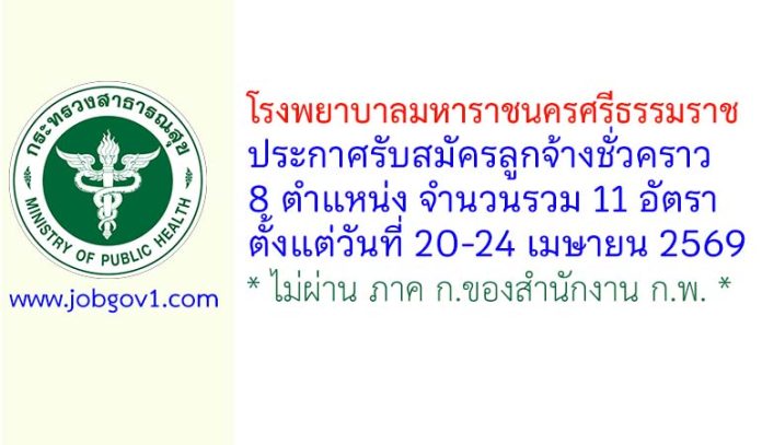 โรงพยาบาลมหาราชนครศรีธรรมราช รับสมัครลูกจ้างชั่วคราว 8 ตำแหน่ง 11 อัตรา ตั้งแต่วันที่ 20-24 เมษายน 2569