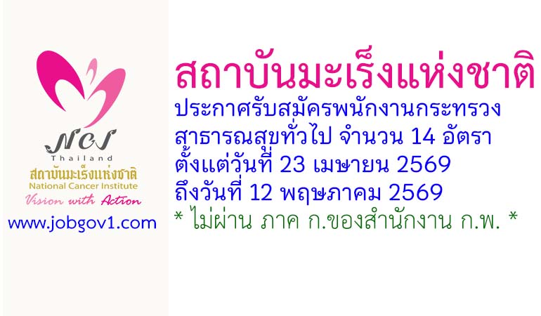 สถาบันมะเร็งแห่งชาติ รับสมัครพนักงานกระทรวงสาธารณสุขทั่วไป 14 อัตรา ตั้งแต่วันที่ 23 เมษายน 2569 ถึงวันที่ 12 พฤษภาคม 2569