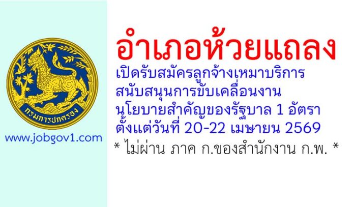 อำเภอห้วยแถลง รับสมัครลูกจ้างเหมาบริการสนับสนุนการขับเคลื่อนงานนโยบายสำคัญของรัฐบาล 1 อัตรา ตั้งแต่วันที่ 20-22 เมษายน 2569