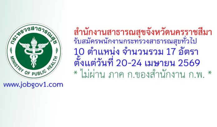 สำนักงานสาธารณสุขจังหวัดนครราชสีมา รับสมัครพนักงานกระทรวงสาธารณสุขทั่วไป 17 อัตรา ตั้งแต่วันที่ 20-24 เมษายน 2569