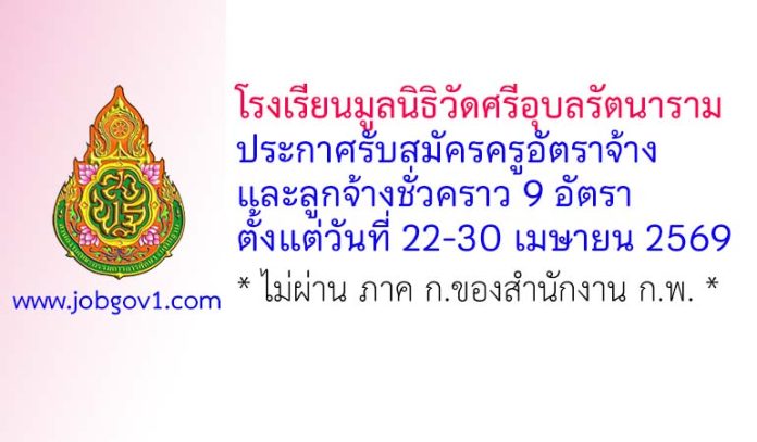 โรงเรียนมูลนิธิวัดศรีอุบลรัตนาราม รับสมัครครูอัตราจ้าง และลูกจ้างชั่วคราว 9 อัตรา ตั้งแต่วันที่ 22-30 เมษายน 2569