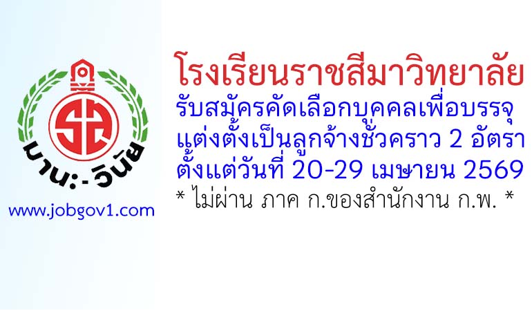 โรงเรียนราชสีมาวิทยาลัย รับสมัครลูกจ้างชั่วคราว 2 อัตรา ตั้งแต่วันที่ 20-29 เมษายน 2569