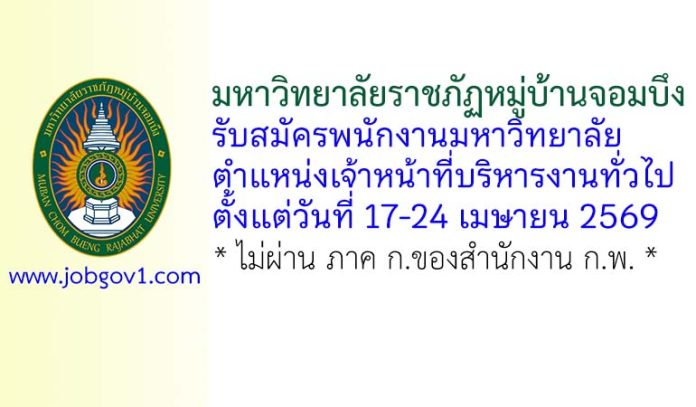 มหาวิทยาลัยราชภัฏหมู่บ้านจอมบึง รับสมัครพนักงานมหาวิทยาลัย ตำแหน่งเจ้าหน้าที่บริหารงานทั่วไป ตั้งแต่วันที่ 17-24 เมษายน 2569