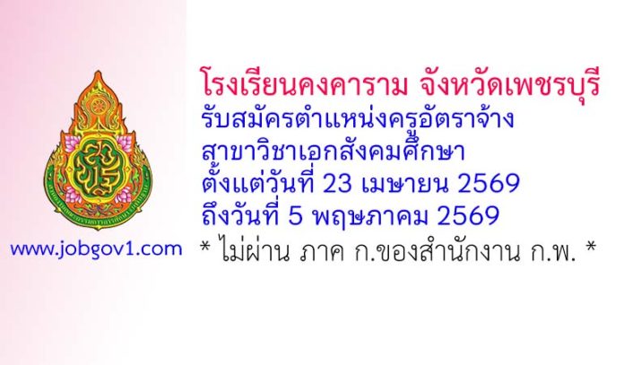 โรงเรียนคงคาราม จังหวัดเพชรบุรี รับสมัครครูอัตราจ้าง สาขาวิชาเอกสังคมศึกษา ตั้งแต่วันที่ 23 เมษายน 2569 ถึงวันที่ 5 พฤษภาคม 2569
