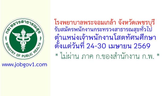 โรงพยาบาลพระจอมเกล้า จังหวัดเพชรบุรี รับสมัครพนักงานกระทรวงสาธารณสุขทั่วไป ตำแหน่งเจ้าพนักงานโสตทัศนศึกษา ตั้งแต่วันที่ 24-30 เมษายน 2569