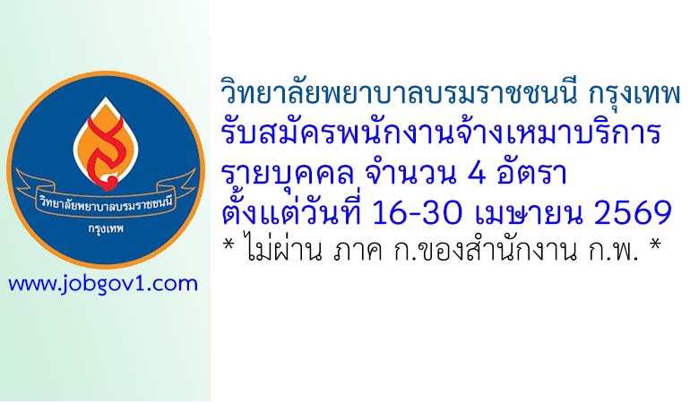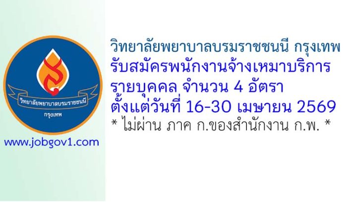วิทยาลัยพยาบาลบรมราชชนนี กรุงเทพ รับสมัครพนักงานจ้างเหมาบริการรายบุคคล 4 อัตรา ตั้งแต่วันที่ 16-30 เมษายน 2569