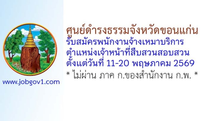 ศูนย์ดำรงธรรมจังหวัดขอนแก่น รับสมัครพนักงานจ้างเหมาบริการ ตำแหน่งเจ้าหน้าที่สืบสวนสอบสวน ตั้งแต่วันที่ 11-20 พฤษภาคม 2569