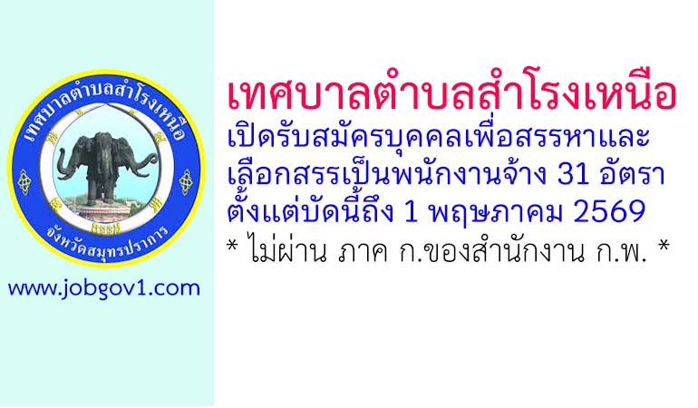 เทศบาลตำบลสำโรงเหนือ รับสมัครบุคคลเพื่อสรรหาและเลือกสรรเป็นพนักงานจ้าง 31 อัตรา ตั้งแต่บัดนี้ถึง 1 พฤษภาคม 2569