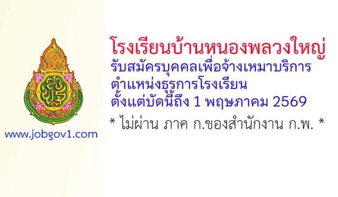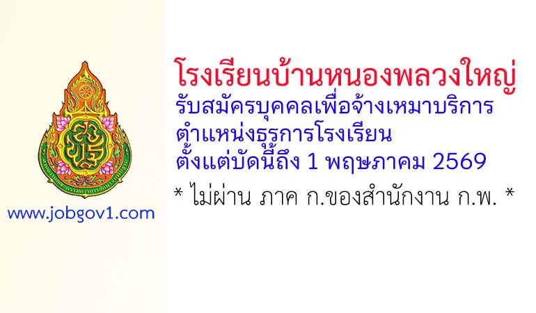 โรงเรียนบ้านหนองพลวงใหญ่ รับสมัครบุคคลเพื่อจ้างเหมาบริการ ตำแหน่งธุรการโรงเรียน ตั้งแต่บัดนี้ถึง 1 พฤษภาคม 2569