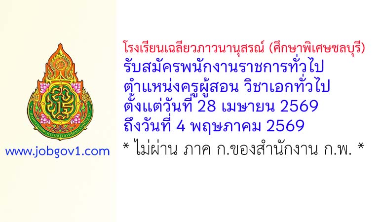 โรงเรียนเฉลียวภาวนานุสรณ์ (ศึกษาพิเศษชลบุรี) รับสมัครพนักงานราชการทั่วไป ตำแหน่งครูผู้สอน วิชาเอกทั่วไป ตั้งแต่วันที่ 28 เมษายน 2569 ถึงวันที่ 4 พฤษภาคม 2569