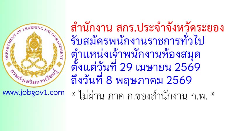 สำนักงาน สกร.ประจำจังหวัดระยอง รับสมัครพนักงานราชการทั่วไป ตำแหน่งเจ้าพนักงานห้องสมุด ตั้งแต่วันที่ 29 เมษายน 2569 ถึงวันที่ 8 พฤษภาคม 2569