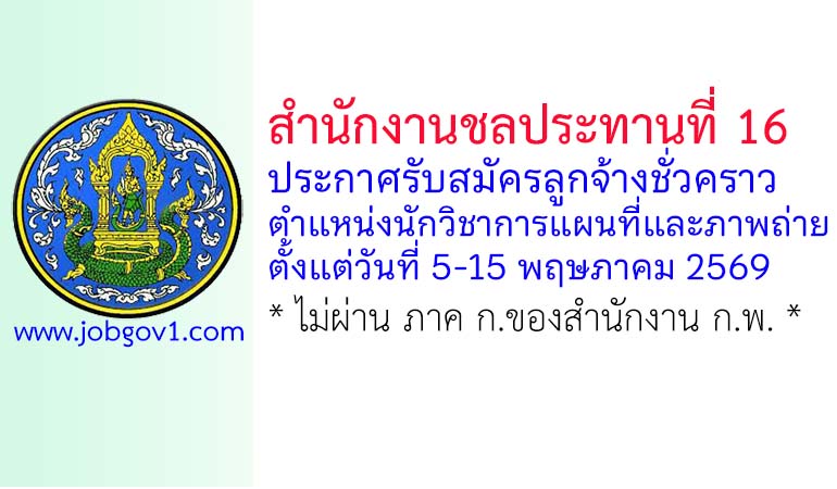 สำนักงานชลประทานที่ 16 รับสมัครลูกจ้างชั่วคราว ตำแหน่งนักวิชาการแผนที่และภาพถ่าย ตั้งแต่วันที่ 5-15 พฤษภาคม 2569