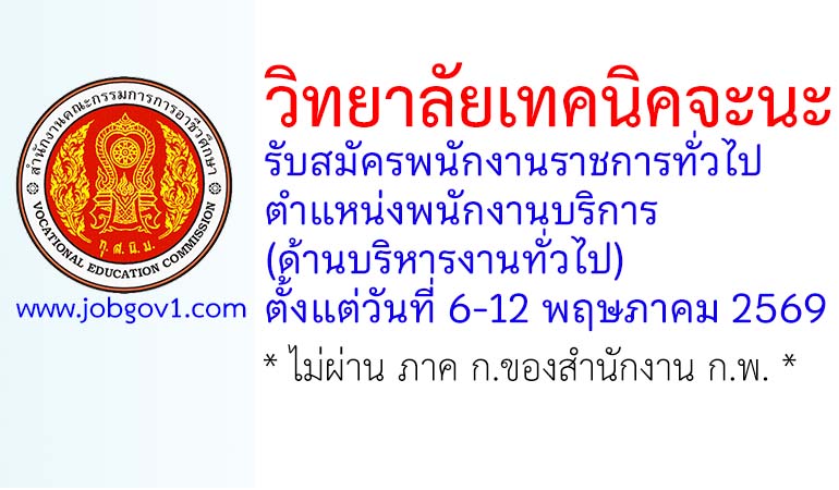 วิทยาลัยเทคนิคจะนะ รับสมัครพนักงานราชการทั่วไป ตำแหน่งพนักงานบริการ (ด้านบริหารงานทั่วไป) ตั้งแต่วันที่ 6-12 พฤษภาคม 2569