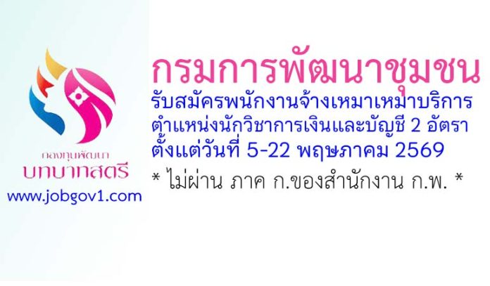 กรมการพัฒนาชุมชน รับสมัครพนักงานจ้างเหมาเหมาบริการ ตำแหน่งนักวิชาการเงินและบัญชี 2 อัตรา ตั้งแต่วันที่ 5-22 พฤษภาคม 2569