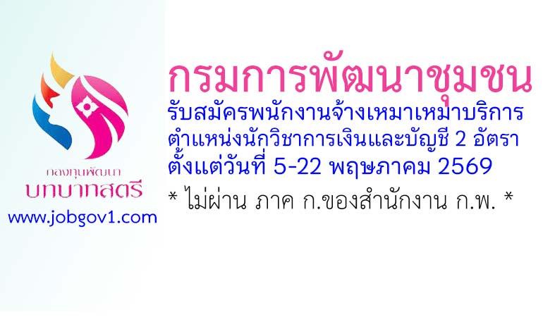 กรมการพัฒนาชุมชน รับสมัครพนักงานจ้างเหมาเหมาบริการ ตำแหน่งนักวิชาการเงินและบัญชี 2 อัตรา