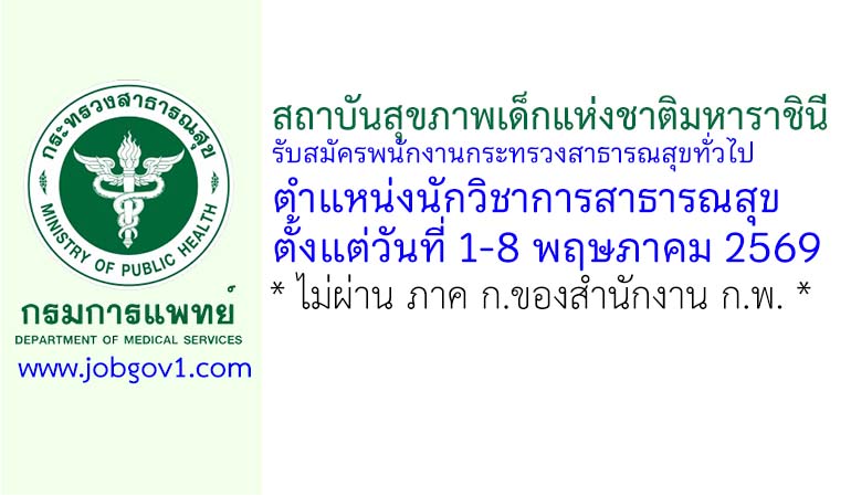 สถาบันสุขภาพเด็กแห่งชาติมหาราชินี รับสมัครพนักงานกระทรวงสาธารณสุขทั่วไป ตำแหน่งนักวิชาการสาธารณสุข ตั้งแต่วันที่ 1-8 พฤษภาคม 2569