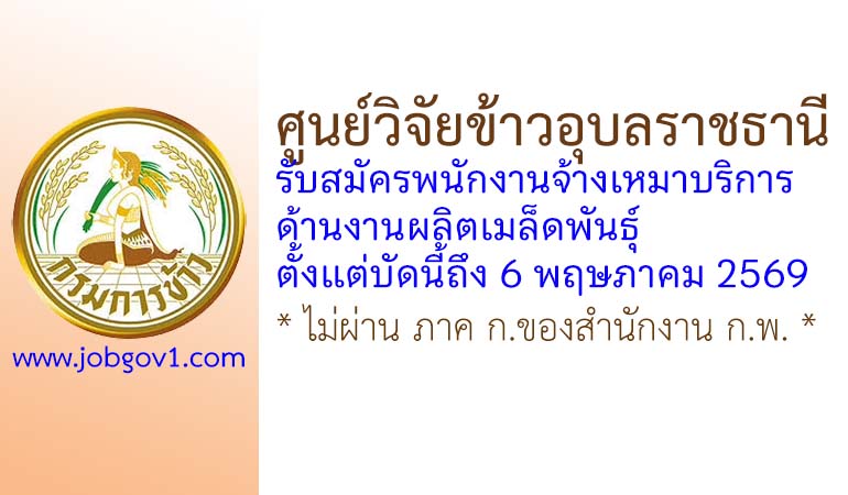 ศูนย์วิจัยข้าวอุบลราชธานี รับสมัครพนักงานจ้างเหมาบริการ ด้านงานผลิตเมล็ดพันธุ์ ตั้งแต่บัดนี้ถึง 6 พฤษภาคม 2569