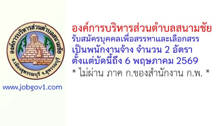 องค์การบริหารส่วนตำบลสนามชัย รับสมัครบุคคลเพื่อสรรหาและเลือกสรรเป็นพนักงานจ้าง 2 อัตรา ตั้งแต่บัดนี้ถึง 6 พฤษภาคม 2569