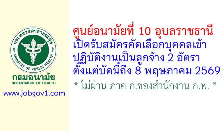 ศูนย์อนามัยที่ 10 อุบลราชธานี รับสมัครคัดเลือกบุคคลเข้าปฏิบัติงานเป็นลูกจ้าง 2 อัตรา ตั้งแต่บัดนี้ถึง 8 พฤษภาคม 2569