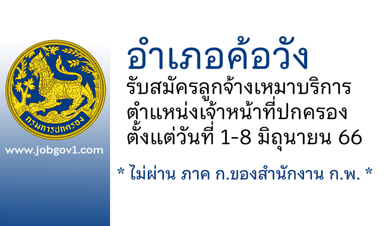 อำเภอค้อวัง รับสมัครลูกจ้างเหมาบริการ ตำแหน่งเจ้าหน้าที่ปกครอง ตั้งแต่วันที่ 1-8 มิถุนายน 2566