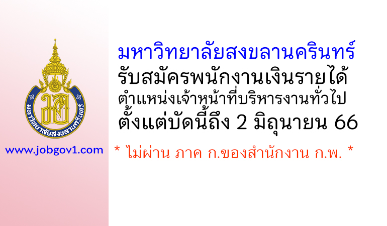 มหาวิทยาลัยสงขลานครินทร์ รับสมัครพนักงานเงินรายได้ ตำแหน่งเจ้าหน้าที่บริหารงานทั่วไป ตั้งแต่บัดนี้ถึง 2 มิถุนายน 2566