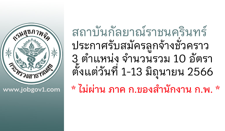 สถาบันกัลยาณ์ราชนครินทร์ รับสมัครลูกจ้างชั่วคราว 3 ตำแหน่ง 10 อัตรา ตั้งแต่วันที่ 1-13 มิถุนายน 2566