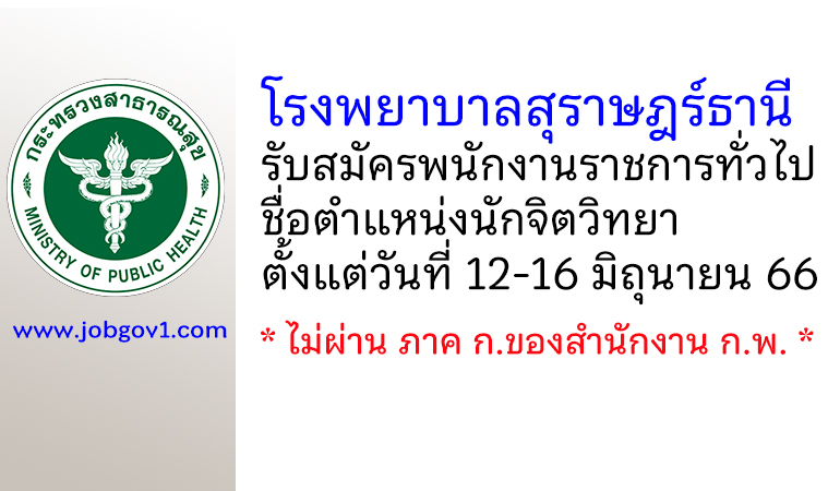 โรงพยาบาลสุราษฎร์ธานี รับสมัครพนักงานราชการทั่วไป ตำแหน่งนักจิตวิทยา ตั้งแต่วันที่ 12-16 มิถุนายน 2566