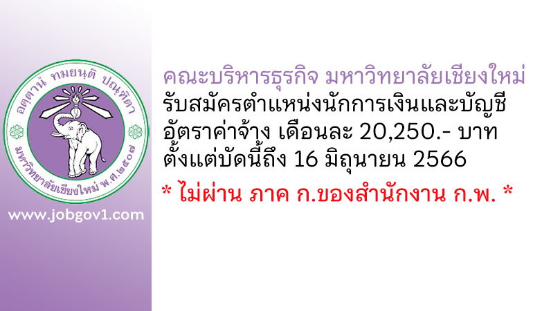 คณะบริหารธุรกิจ มหาวิทยาลัยเชียงใหม่ รับสมัครตำแหน่งนักการเงินและบัญชี ตั้งแต่บัดนี้ถึง 16 มิถุนายน 2566