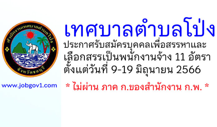 เทศบาลตำบลโป่ง รับสมัครบุคคลเพื่อสรรหาและเลือกสรรเป็นพนักงานจ้าง 11 อัตรา ตั้งแต่วันที่ 9-19 มิถุนายน 2566
