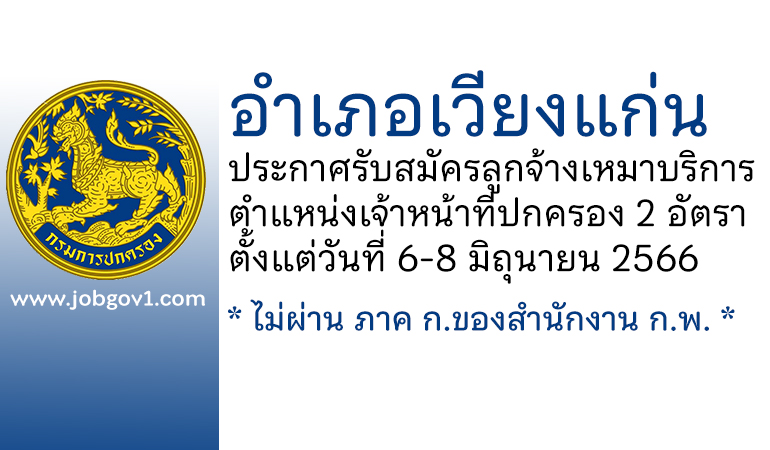 อำเภอเวียงแก่น รับสมัครลูกจ้างเหมาบริการ ตำแหน่งเจ้าหน้าที่ปกครอง 2 อัตรา ตั้งแต่วันที่ 6-8 มิถุนายน 2566
