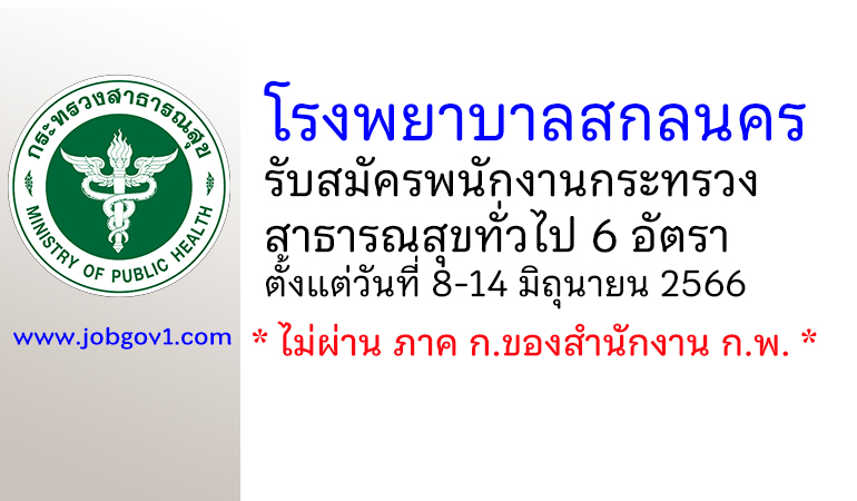 โรงพยาบาลสกลนคร รับสมัครพนักงานกระทรวงสาธารณสุขทั่วไป 6 อัตรา ตั้งแต่วันที่ 8-14 มิถุนายน 2566