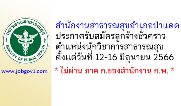 สำนักงานสาธารณสุขอำเภอป่าแดด รับสมัครลูกจ้างชั่วคราว ตำแหน่งนักวิชาการสาธารณสุข ตั้งแต่วันที่ 12-16 มิถุนายน 2566