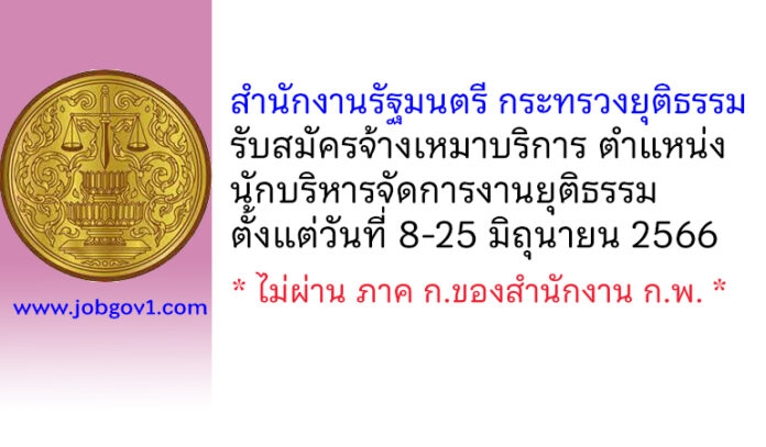 สำนักงานรัฐมนตรี กระทรวงยุติธรรม รับสมัครจ้างเหมาบริการ ตำแหน่งนักบริหารจัดการงานยุติธรรม ตั้งแต่วันที่ 8-25 มิถุนายน 2566