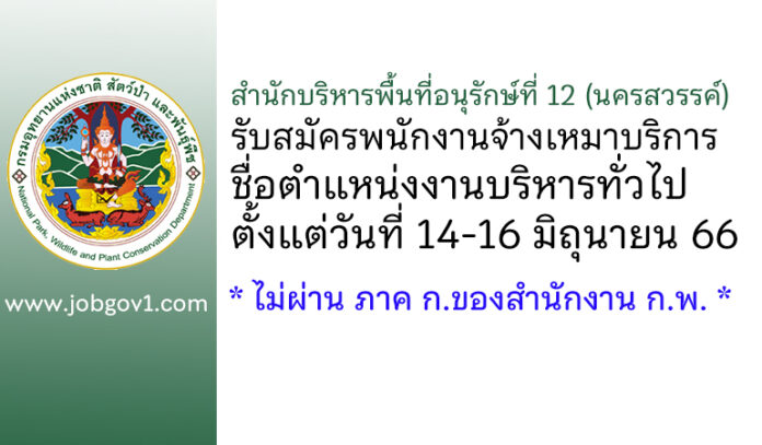 สำนักบริหารพื้นที่อนุรักษ์ที่ 12 (นครสวรรค์) รับสมัครพนักงานจ้างเหมาบริการ ตำแหน่งงานบริหารทั่วไป ตั้งแต่วันที่ 14-16 มิถุนายน 2566