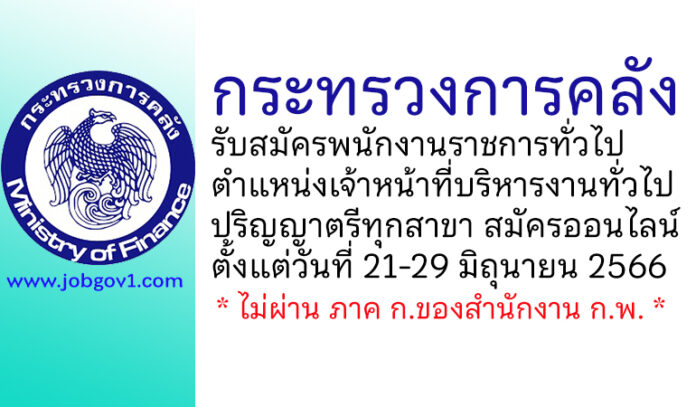 กระทรวงการคลัง รับสมัครพนักงานราชการทั่วไป ตำแหน่งเจ้าหน้าที่บริหารงานทั่วไป ตั้งแต่วันที่ 21-29 มิถุนายน 2566