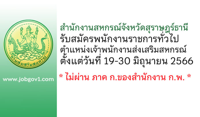 สํานักงานสหกรณ์จังหวัดสุราษฎร์ธานี รับสมัครพนักงานราชการทั่วไป ตําแหน่งเจ้าพนักงานส่งเสริมสหกรณ์ ตั้งแต่วันที่ 19-30 มิถุนายน 2566