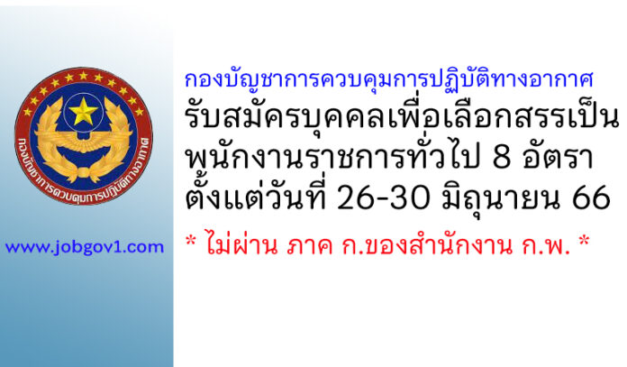 กองบัญชาการควบคุมการปฏิบัติทางอากาศ รับสมัครบุคคลเพื่อเลือกสรรเป็นพนักงานราชการทั่วไป 8 อัตรา ตั้งแต่วันที่ 26-30 มิถุนายน 2566